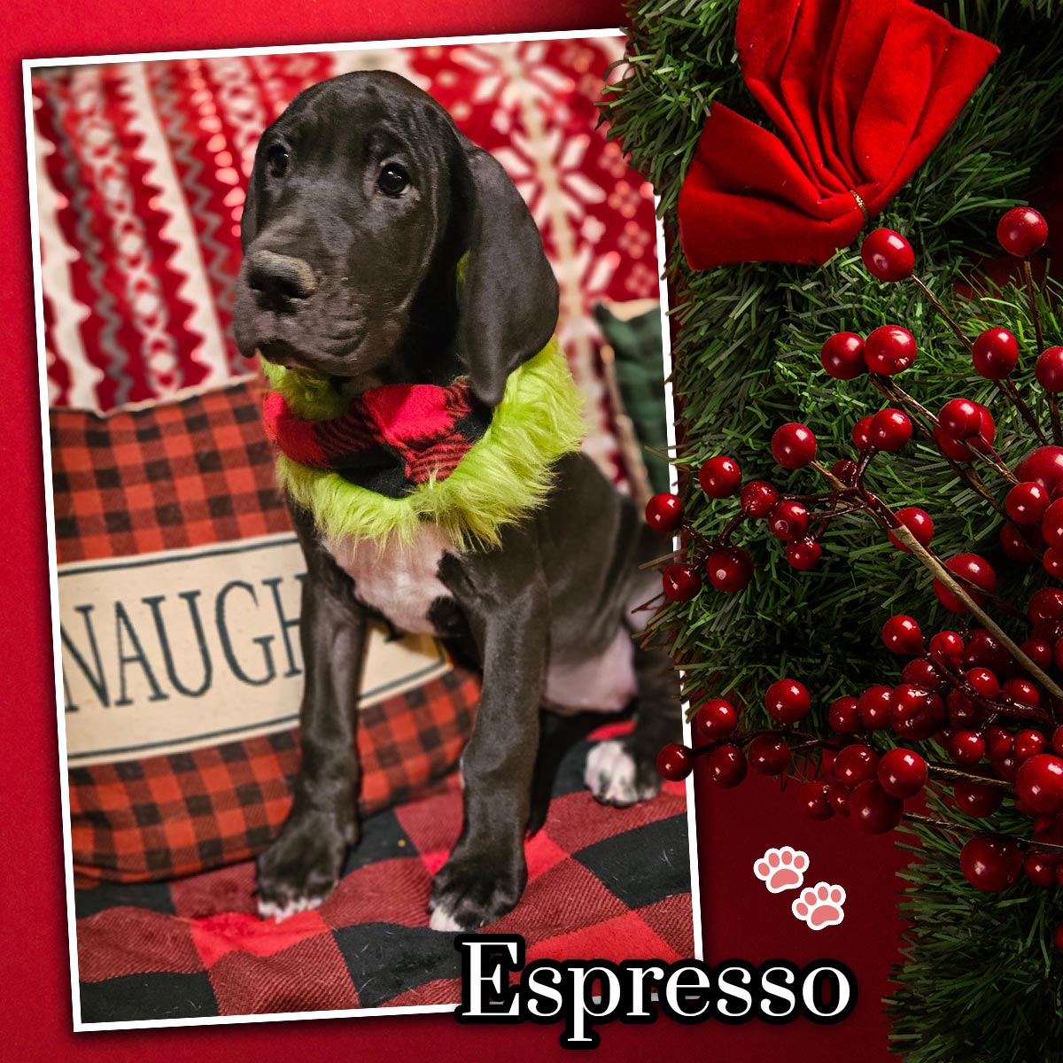 We couldn’t be more excited to share this special moment! Evie is expecting her first litter with the handsome Henry! We can’t wait to welcome their little paws into the world soon!